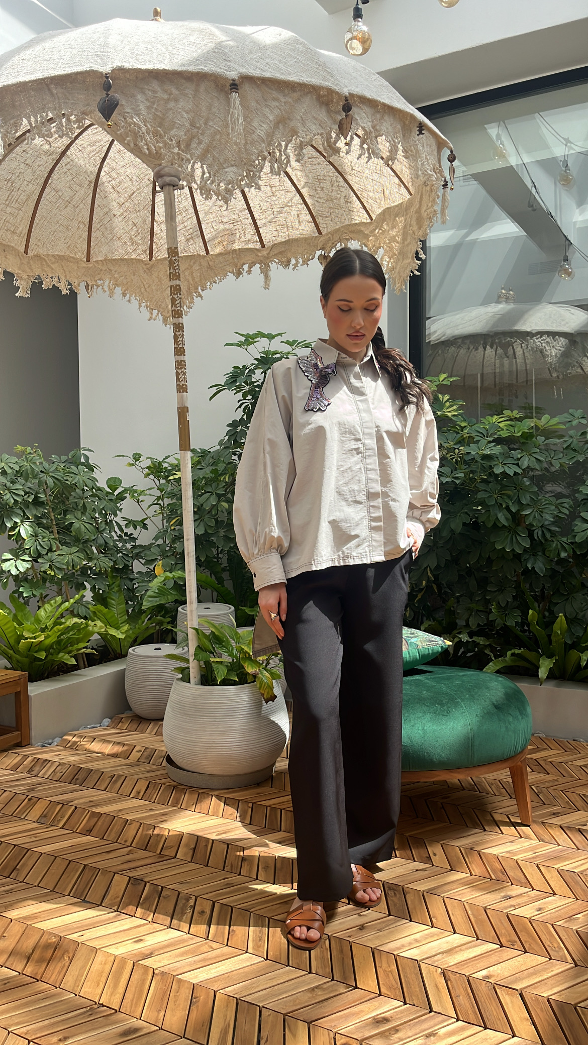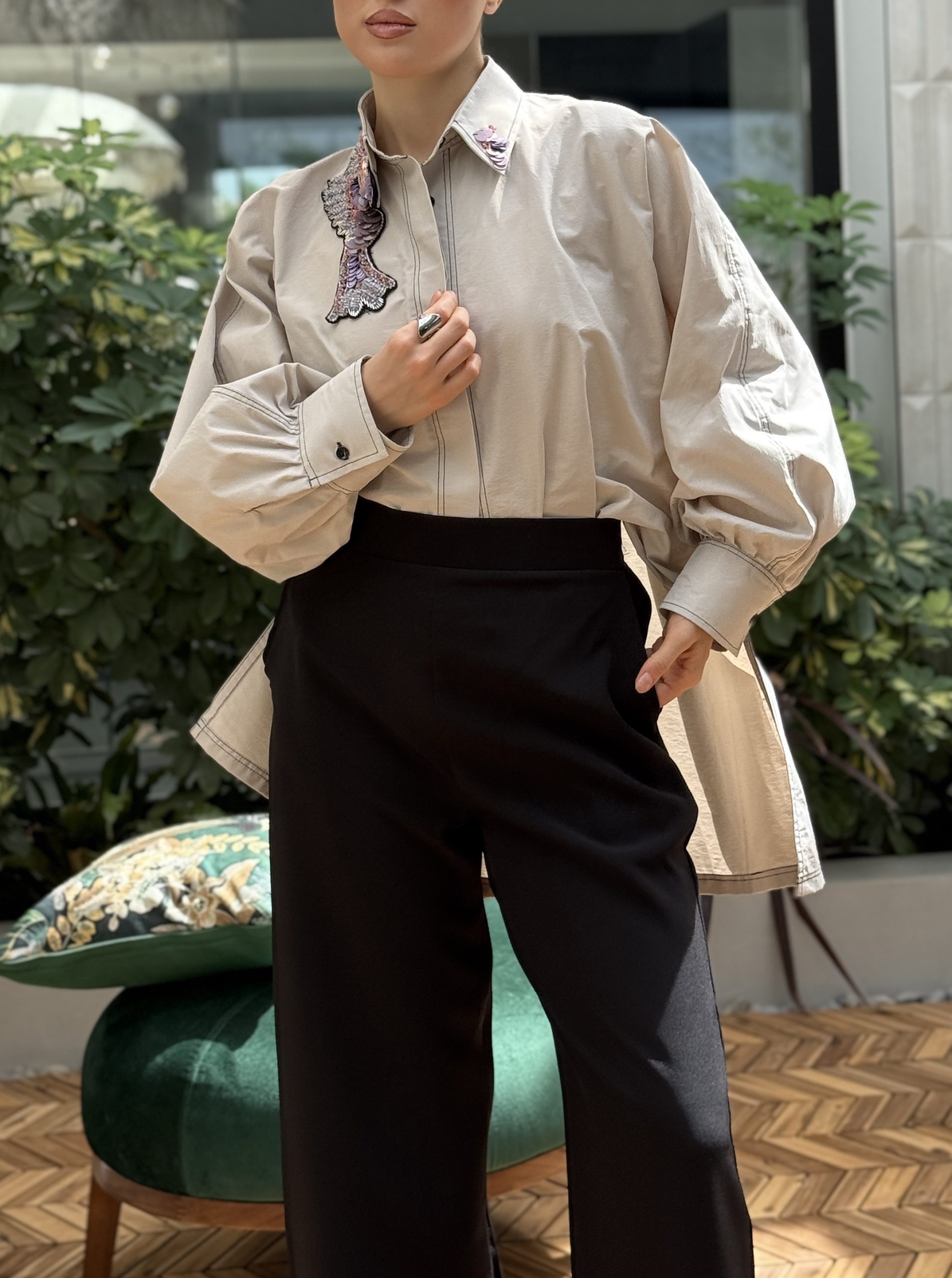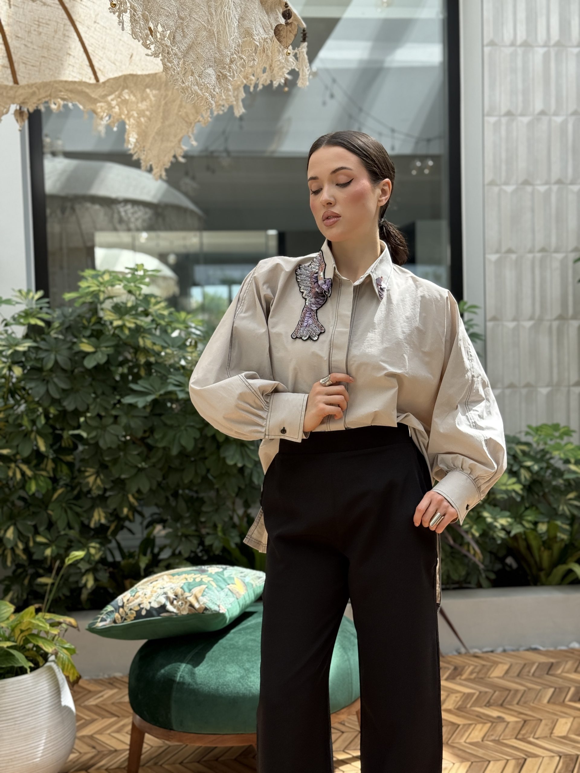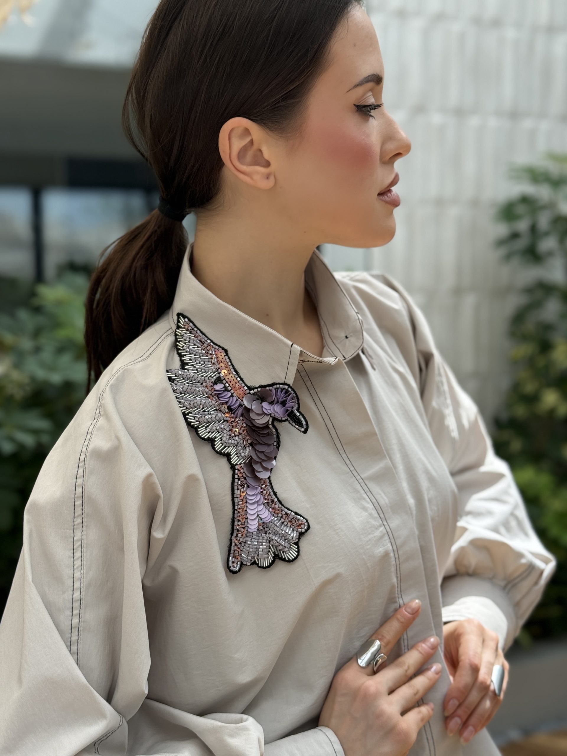 القميص لون رمادي فاتح مع شك الطيور