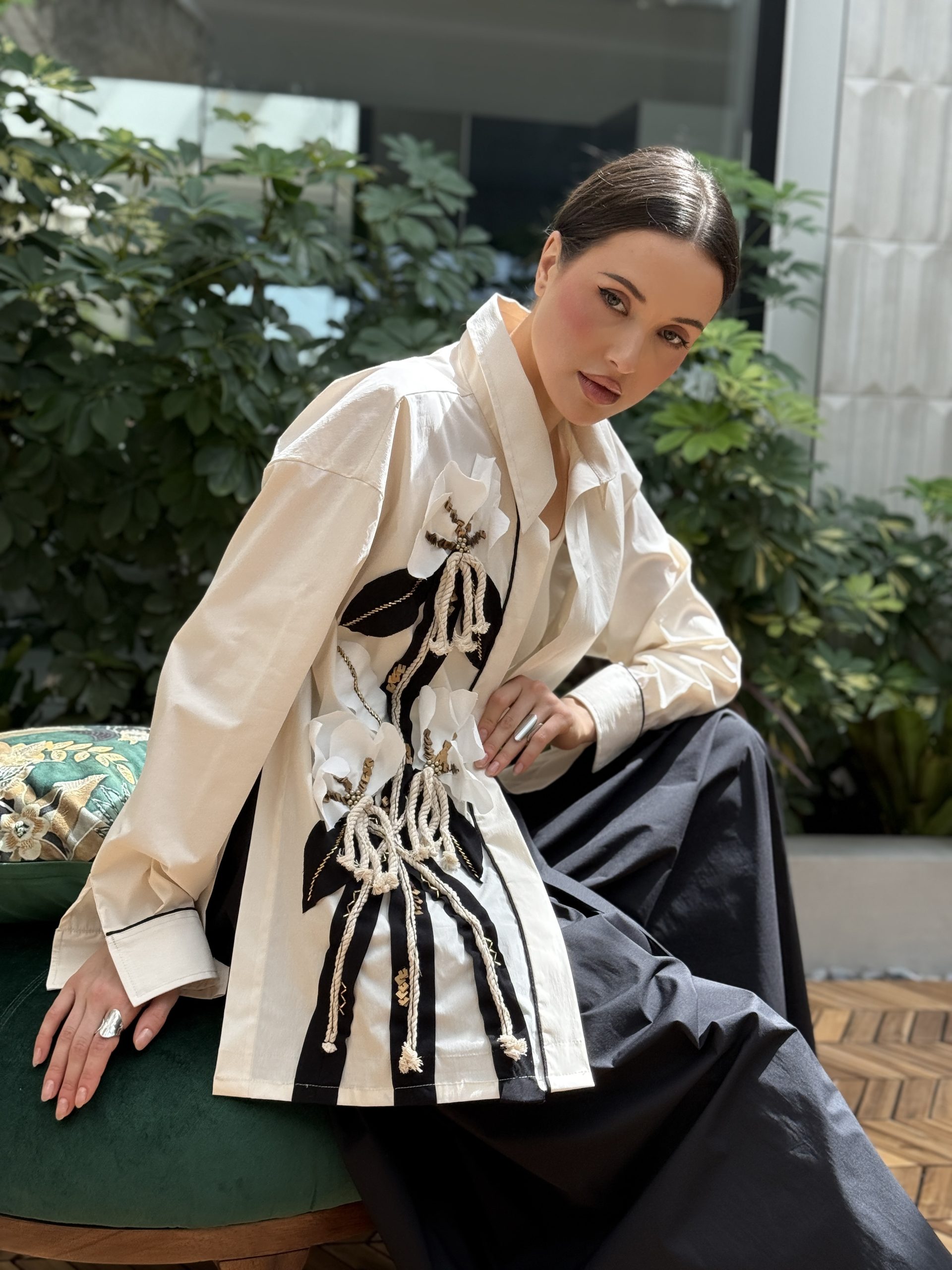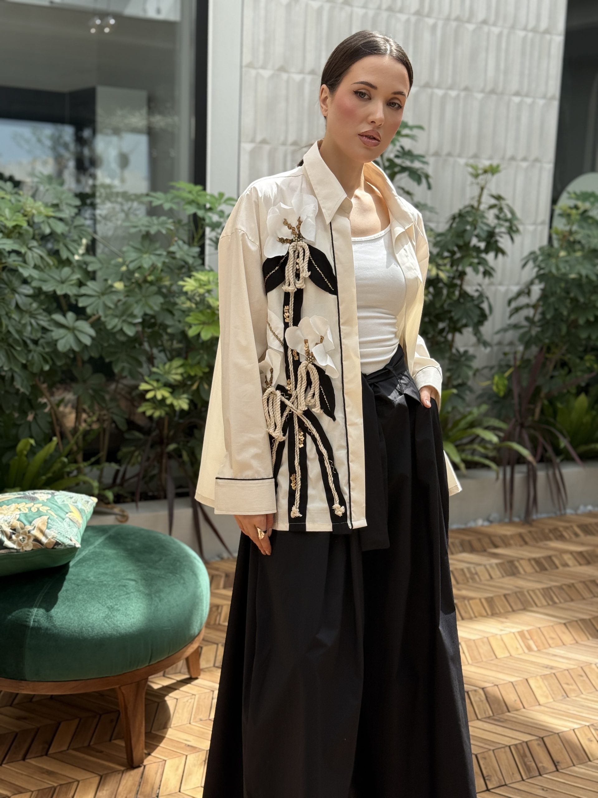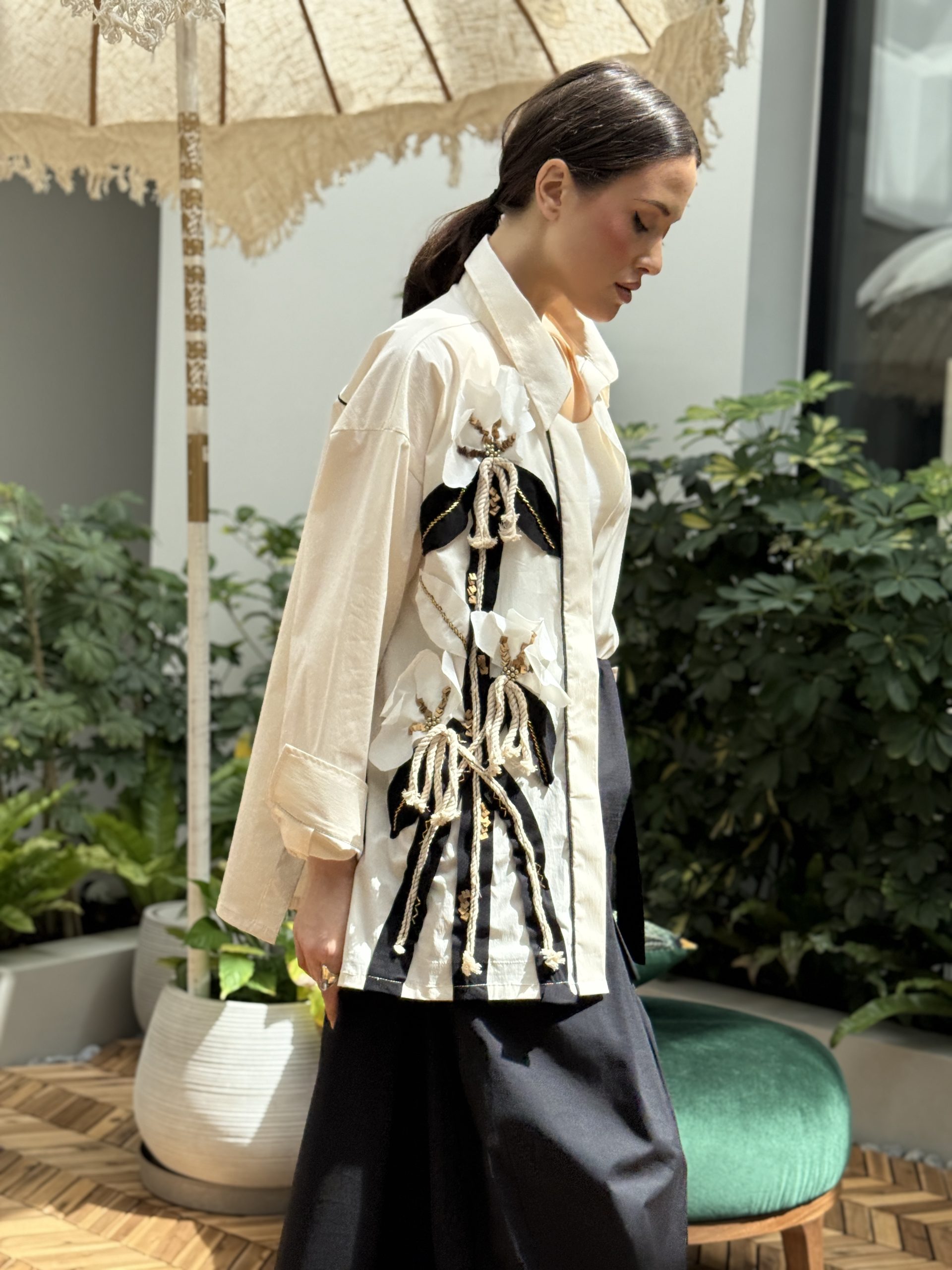 قميص اللون كريمي مع شك على الجنب