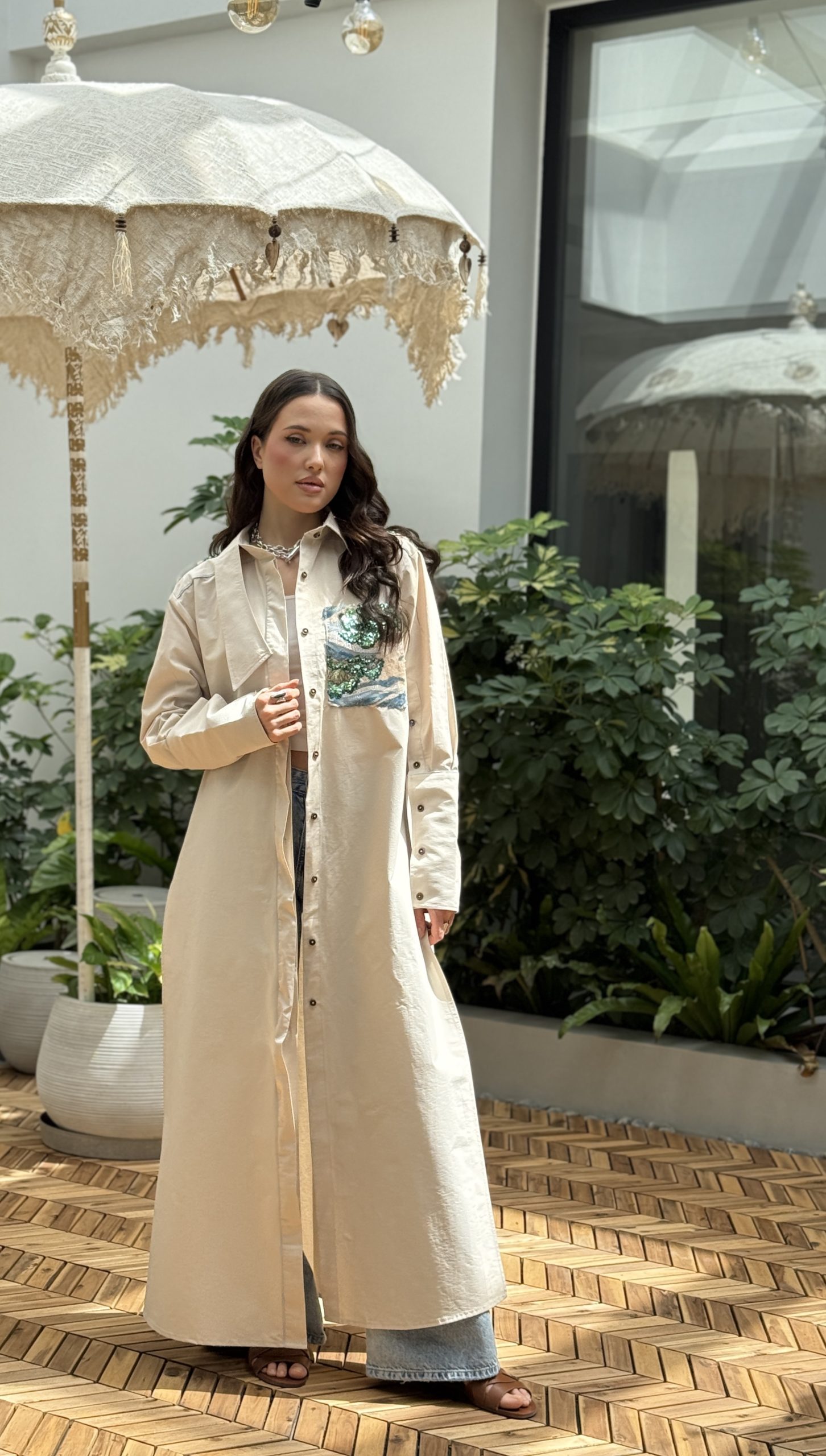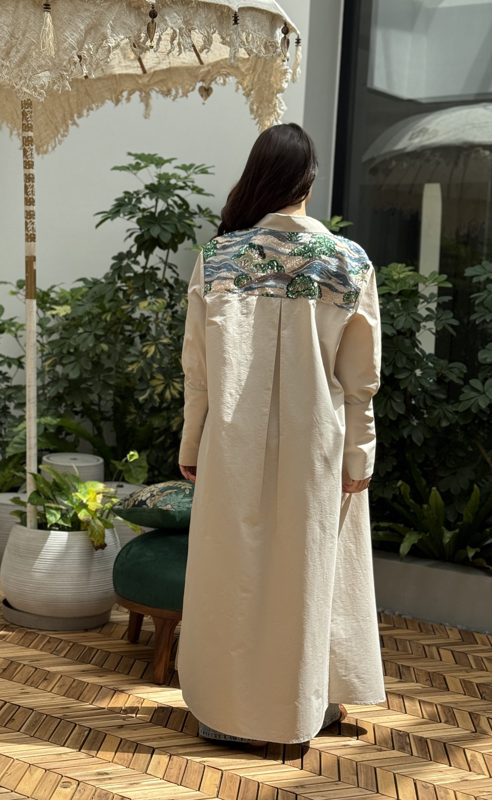 القميص المشمشي الطويل مع شك