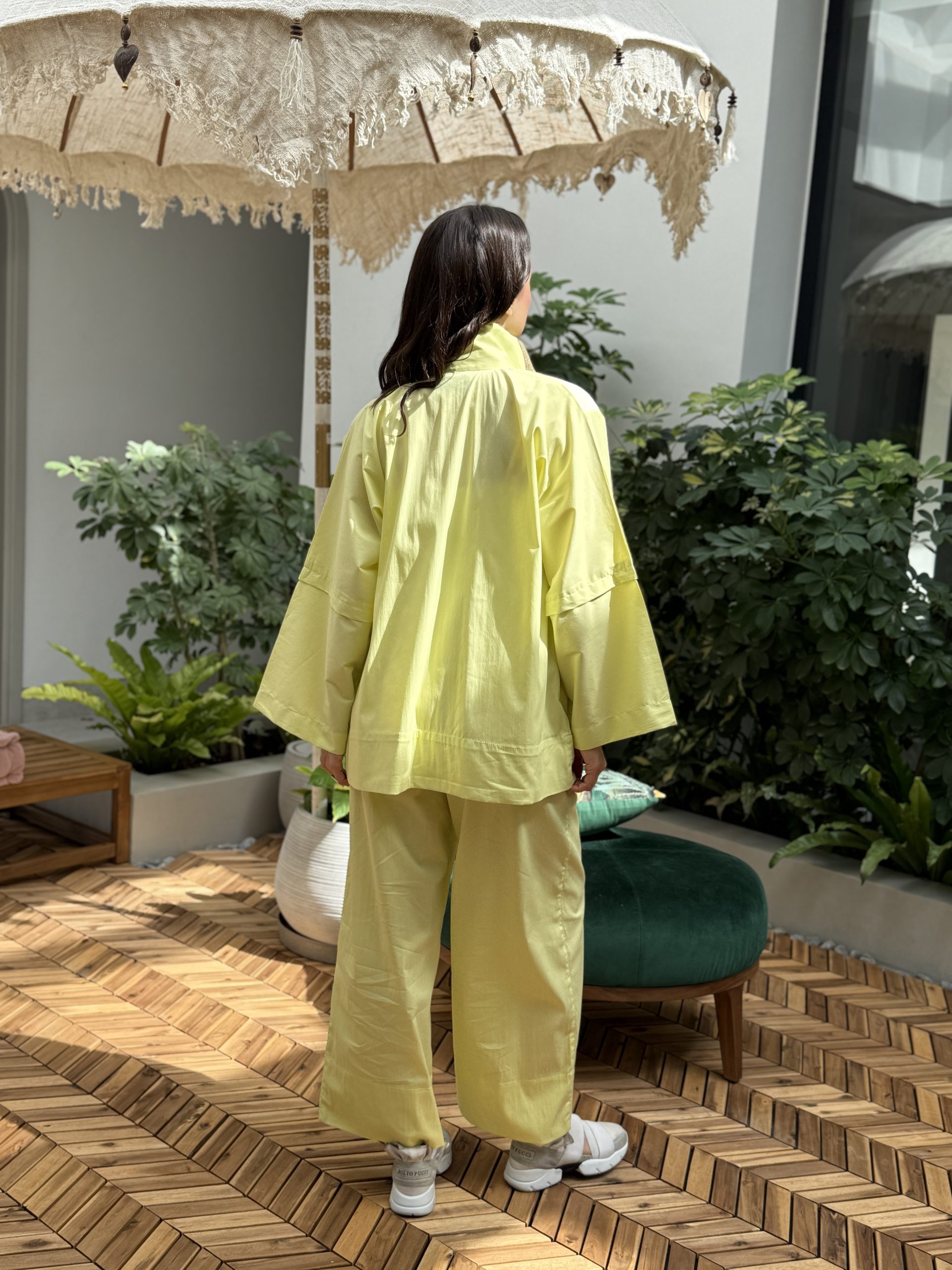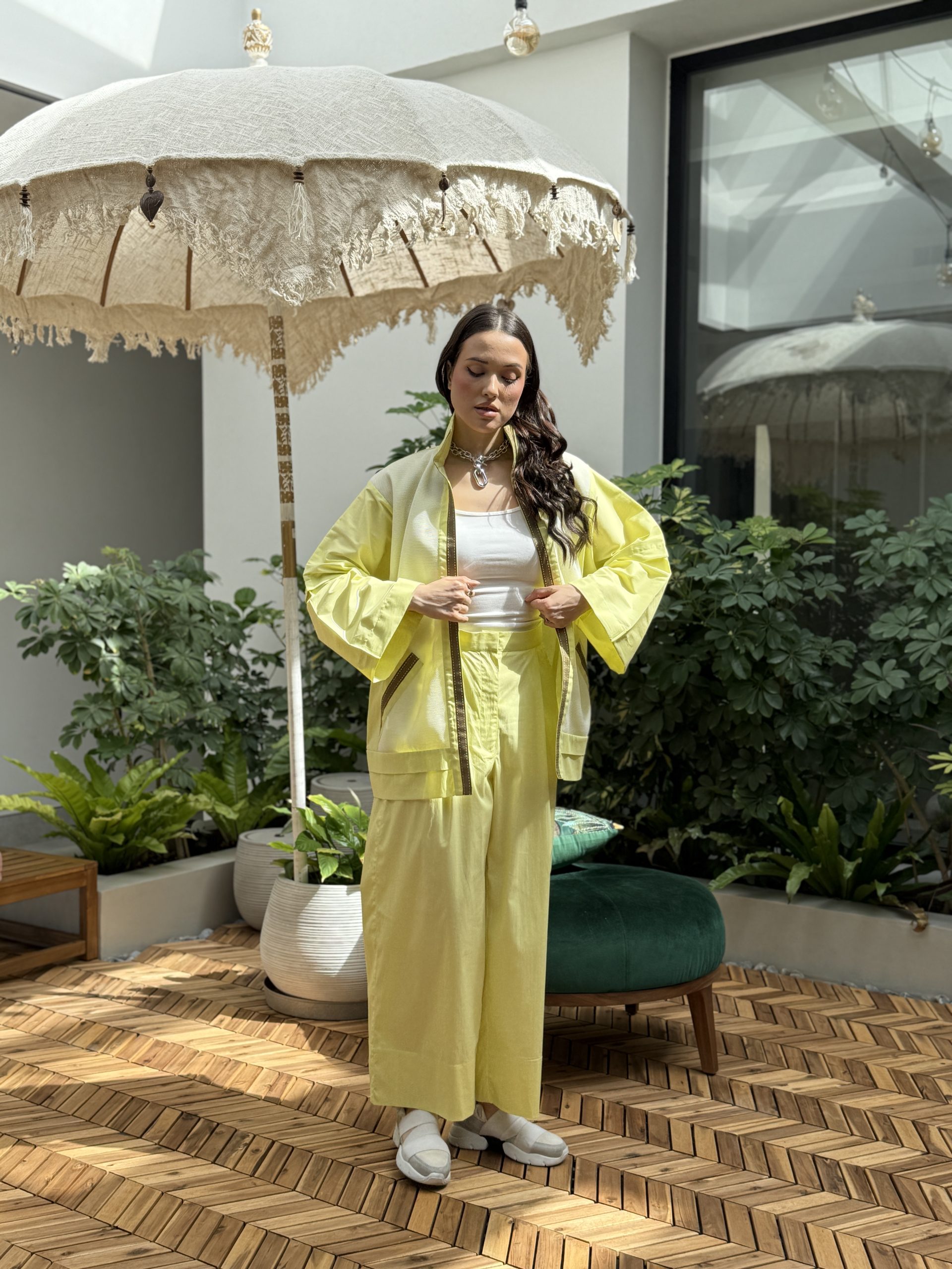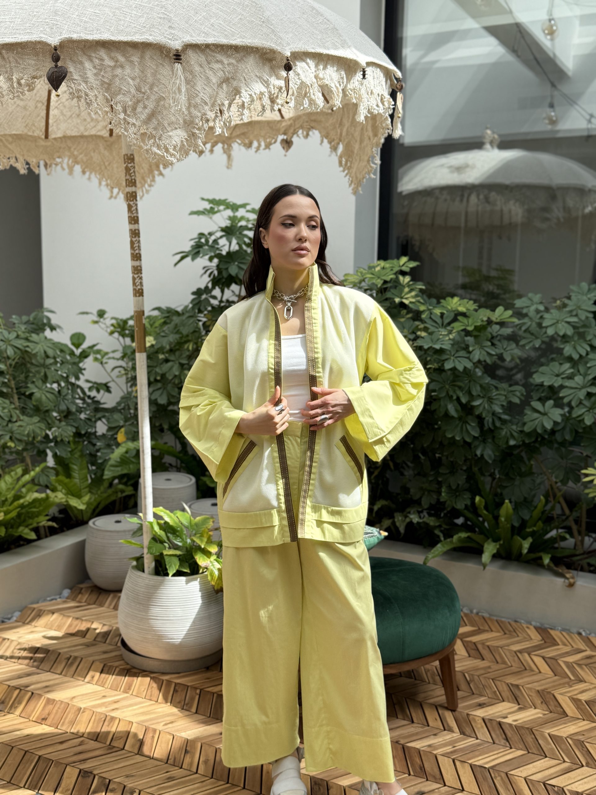 البدلة لون اصفر جاكيت وبنطرون